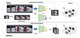 Class-incremental learning is one of the most important settings for the study of Continual Learning, as it closely resembles real-world application scenarios. With constrained memory sizes, catastrophic forgetting arises as the number of classes/tasks increases. Studying continual learning in the video domain poses even more challenges, as video data contains a large number of frames, which places a higher burden on the replay memory. The current common practice is to sub-sample frames from the video stream and store them in the replay memory. In this paper, we propose SMILE a novel replay mechanism for effective video continual learning based on individual/single frames. Through extensive experimentation, we show that under strong memory constraints, video diversity plays a more significant role than temporal information. Therefore, our method focuses on learning from a small number of frames that represent a large number of unique videos. On three representative video datasets, Kinetics, UCF101, and ActivityNet, the proposed method achieves state-of-the-art performance, outperforming the previous state-of-the-art by up to 15.7%.